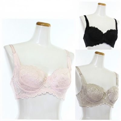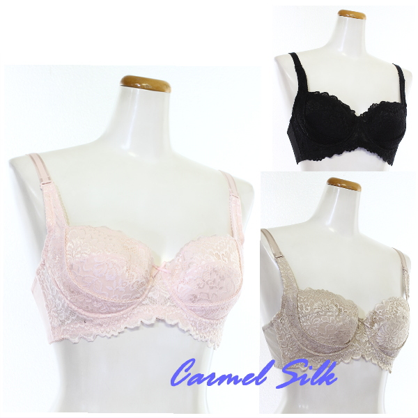 ワイヤー入りのシルクレースブラジャーです。