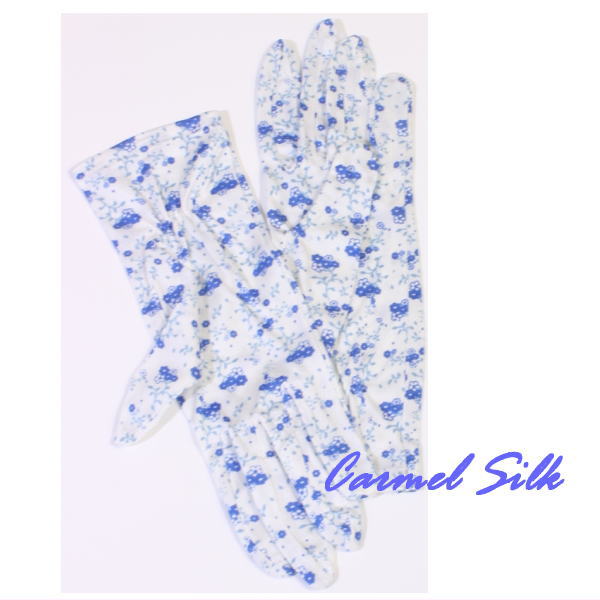 シルクスムースニット手袋 白地ブルー柄【高級】 カーメル激安価格 2540円 |