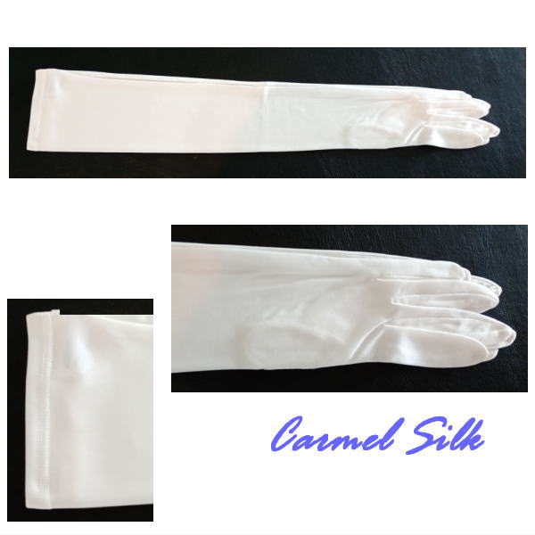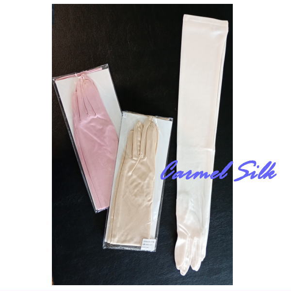 シンプルでドレッシーな雰囲気が漂うシルクロング手袋です。