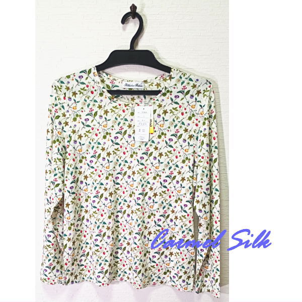 シルク65%長袖カットソー M〜L カーメル激安価格4400円 |