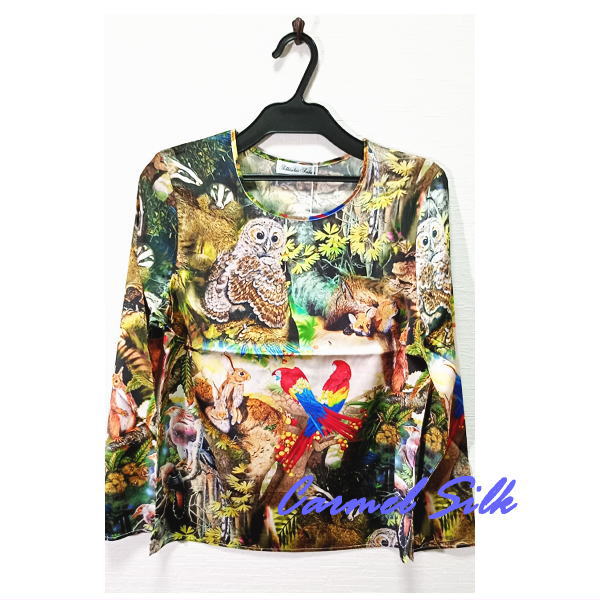 シルクサテン長袖カットソー M カーメル激安価格7280円 |