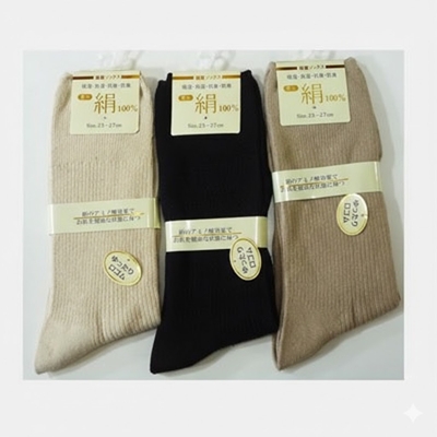 シルク靴下は「夏は涼しく、冬は暖かい!」ので、年中お履き頂けます。 特に、夏場にスポーツをされる時等には汗を感じさせない程の爽快感があります。
