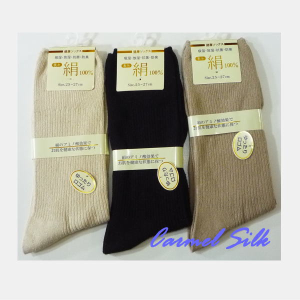 カーメルおすすめの表糸シルク100%メンズ先丸リブソックス(単品)です。