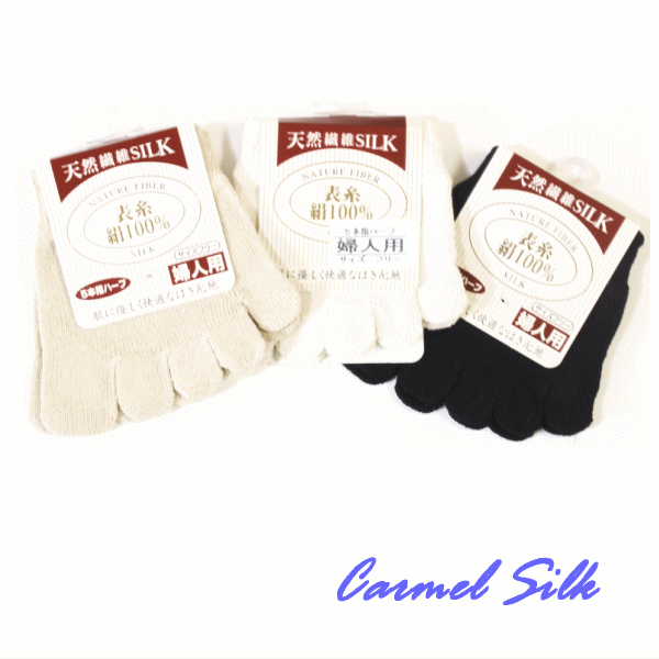 表糸シルク100%の日本製5本指ハーフソックス(レディース)です。