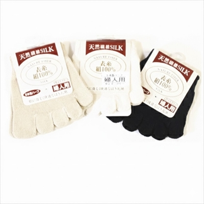 表糸シルク100%の日本製5本指ハーフソックス(レディース)です。