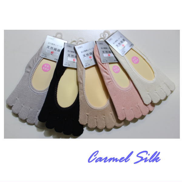 表糸シルク100%(絹紡糸)の日本製5本指パンプスイン(フットカバー)です。