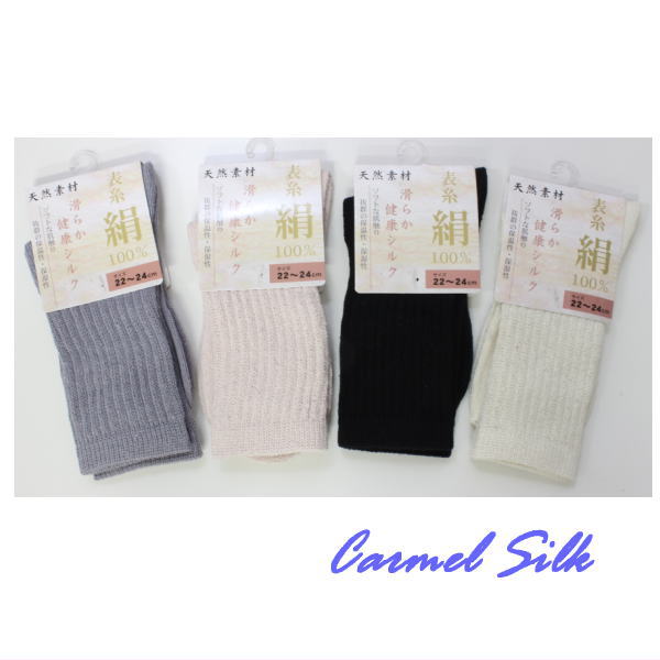 カーメルおすすめの表糸シルク100%冷えとりレディース先丸リブソックス ソフトタッチです。