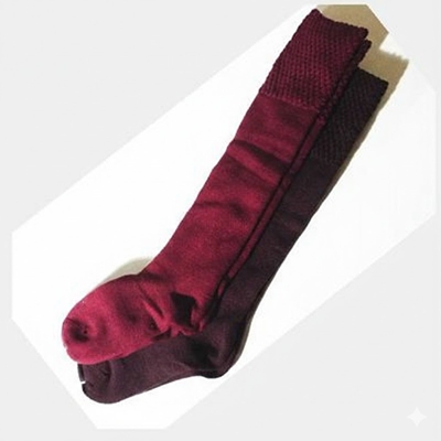 シルクコットンを使用した二重編み先丸パイナップルハイソックスです。
