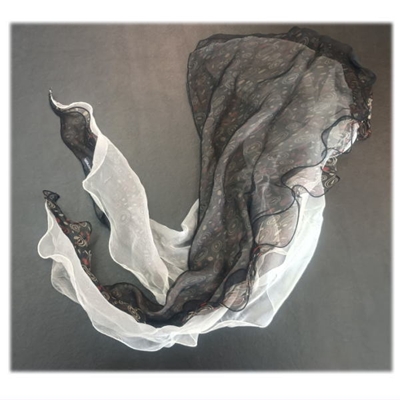 変形シルクシフォンスカーフです。